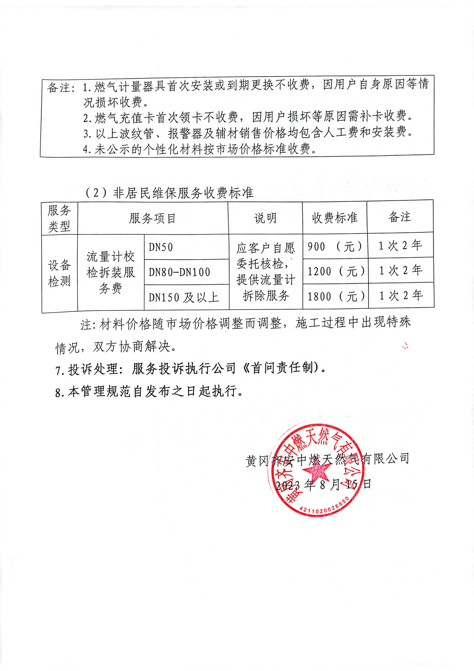 黃岡齊安中燃天然氣有限公司供氣有償服務規范(試行)